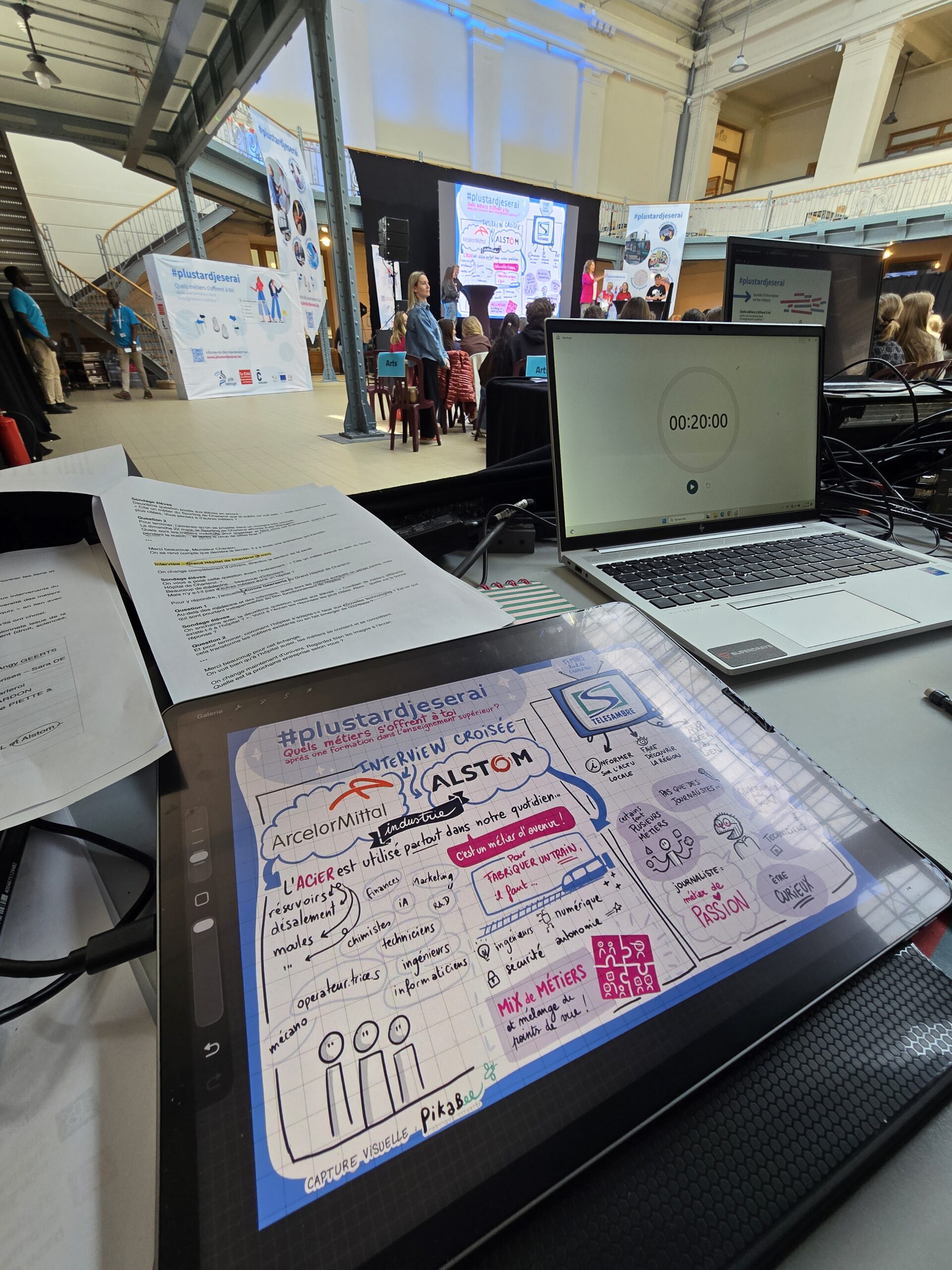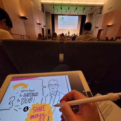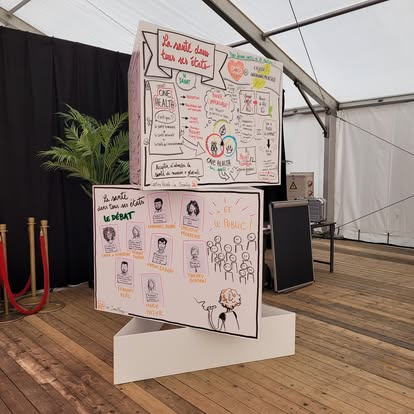 We can also carry out this type of “graphic recording” digitally directly on iPad, on site or remotely, via digital tools adapted to your needs. The screen can then be projected live or as a one-off during the event.